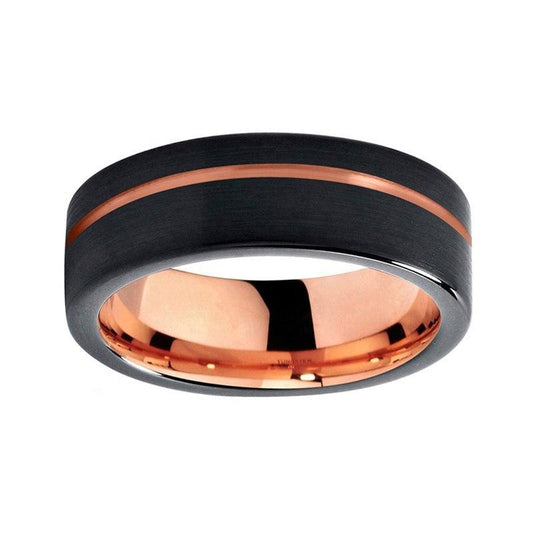Unisex Black and Rose Gold Plated Brush Matte Finished Tungsten Wedding Ring