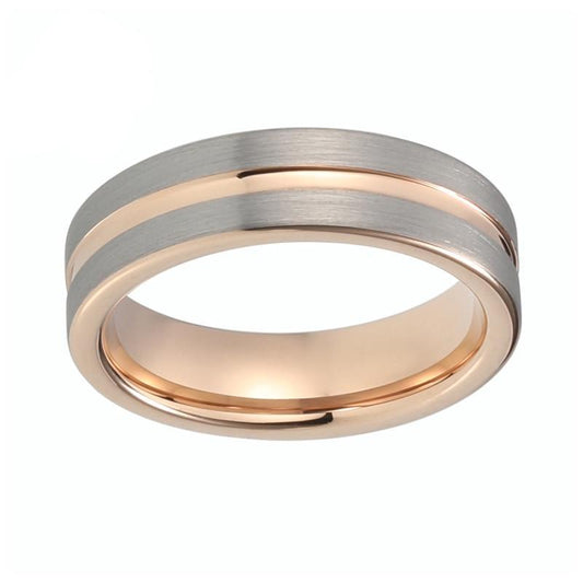 Unisex Pipe Cut Dual Color Rose Gold Plated and Tungsten Carbide Wedding Ring