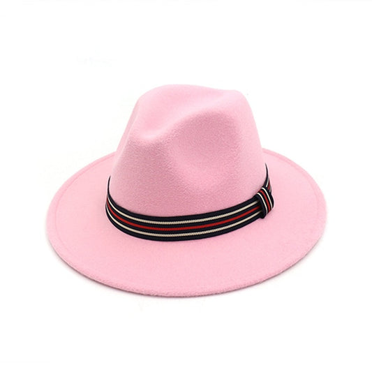 Vintage Plain Wool Felt Fedora Hat with Striped Band