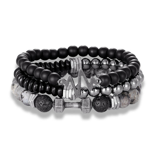 Vintage Matte Hematite Beads and Cool Geometry Stone Bracelet
