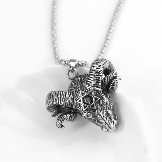 Vintage Hollow Sheep Head with Pentagram Pendant Necklace for Men and Women