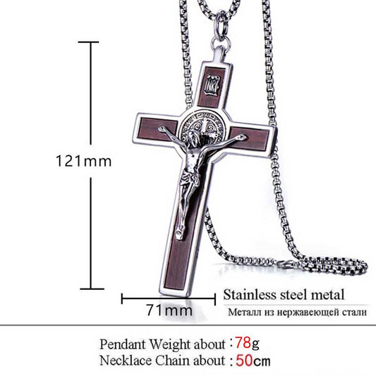 Vintage Large Jesus on Wood Cross Pendant Necklace