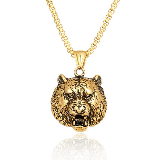 Vintage Gothic Tiger Zodiac Necklace for Men