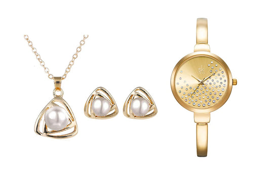 Women's Luxury Quartz Watch, Crystal Necklace & Earrings Jewelry Set