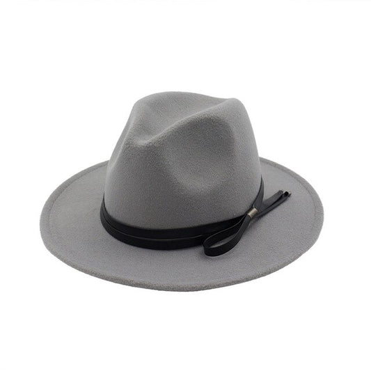 Wool Felt Fedora Hat with Black Leather Band