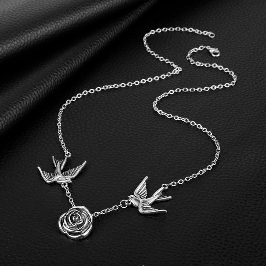 Women's Silver Rose and Doves Pendant Necklace