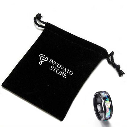 8mm Elegant Abalone Color Inlay with Geometric Facets Band Tungsten Wedding Ring