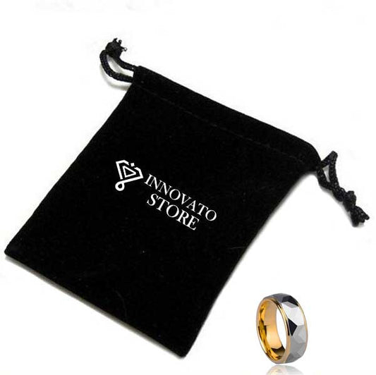 8mm Flat Cut Gold Coated Tungsten with Brushed Matte Geometric pattern Wedding Ring