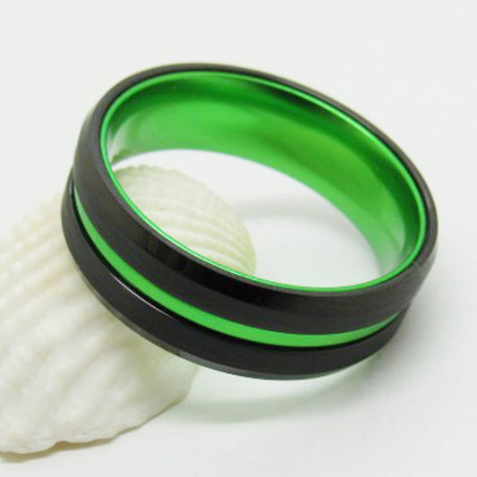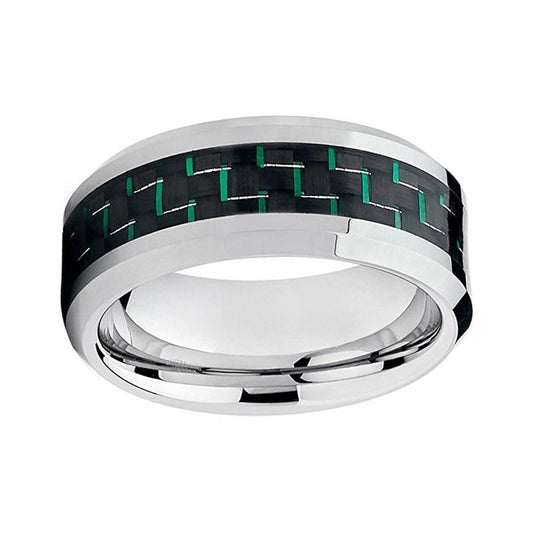 8mm Green & Black Beveled Tungsten Carbide Wedding Band