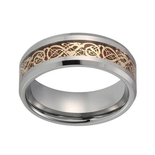 8mm Gold-Plated Koa Wood Dragon Inlay Tungsten Wedding Band