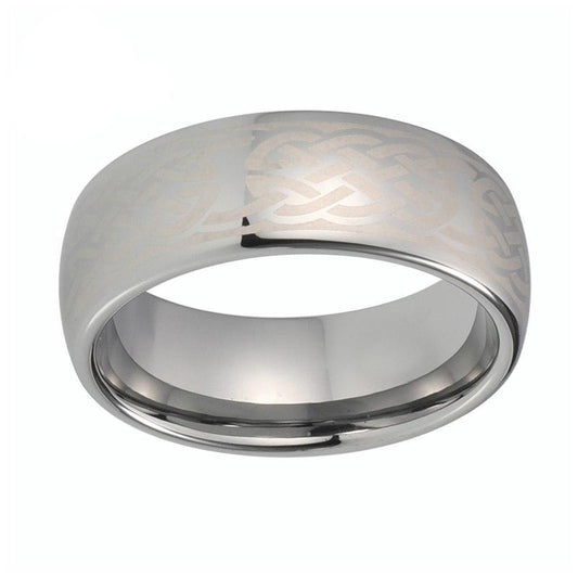 8mm Elegant Silver Coated Tungsten with Celtic Knot Pattern Wedding Ring