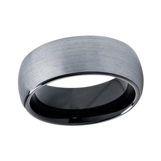 8mm Mens Black Tungsten Carbide Silver Matte Finish Ring
