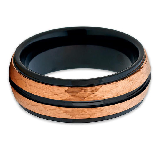 8mm Hammered Rose Gold & Black Tungsten Carbide Wedding Ring