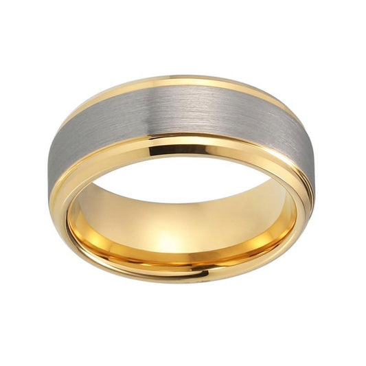 8mm Grey Matte Brushed Tungsten Carbide with Gold Coated Tungsten Wedding Band