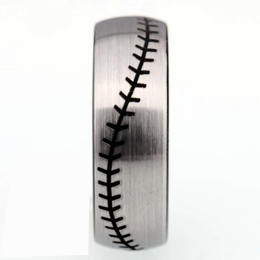 8mm Silver Brushed Matte with Baseball Pattern Tungsten Carbide Wedding Band