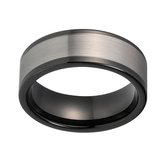 8mm Silver Matte Finish on Black Polished Tungsten Carbide Ring