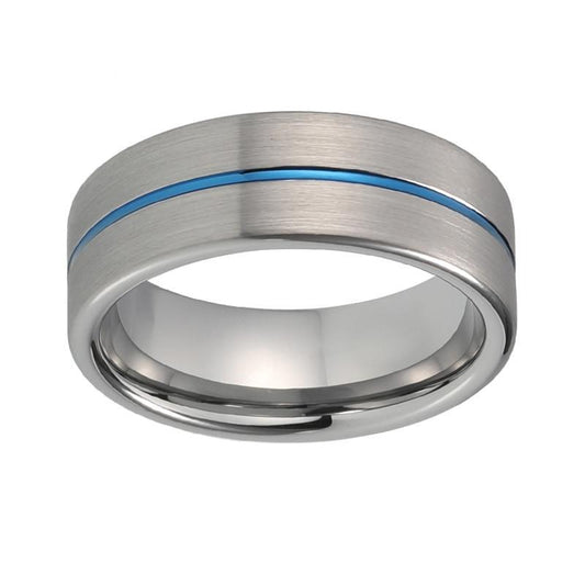 8mm Silver Matte Tungsten Carbide Surface with Blue Groove Wedding Ring