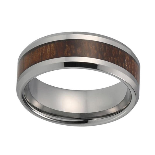 8mm Silver Coated Tungsten Carbide with Koa Wood Inlay Ring