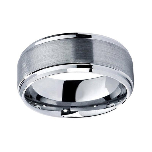 8mm Unisex Pipe Cut Tungsten Wedding Band Brushed Center Polished Edges Ring