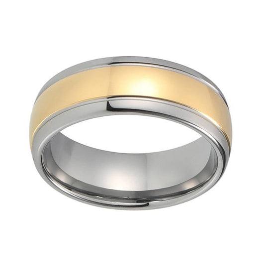 8mm Two-Tone Silver and Gold Plated Grooved, Domed Shape Tungsten Carbide Ring