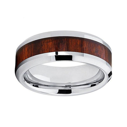 8mm White Silver-Plated Tungsten Carbide with Wood Inlay Wedding Ring