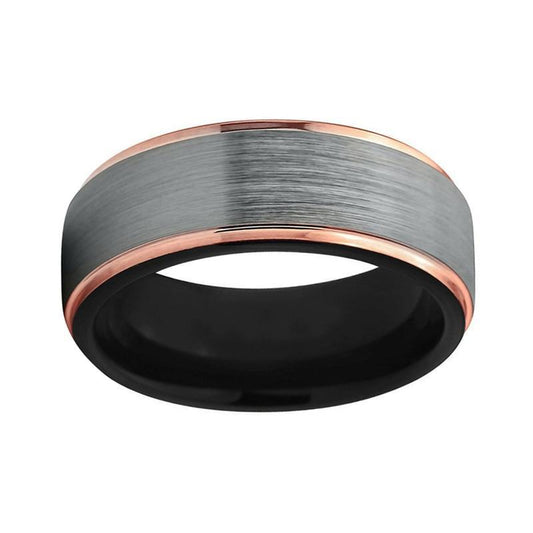 8mm Unisex Black and Rose Gold-Coated Tungsten Carbide Wedding Ring