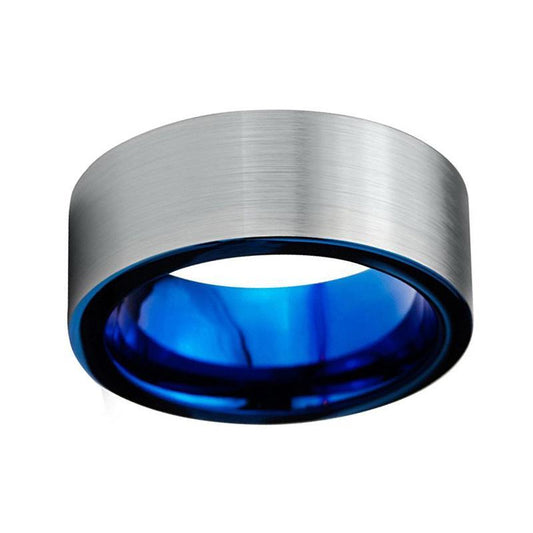 8mm Two Layers, Two Tone Silver Brushed Matte Surface with Blue Interior Wedding Band
