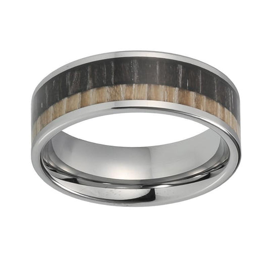 8mm Two Tone Black and Brown Wood Inlay with Silver Coated Tungsten Ring