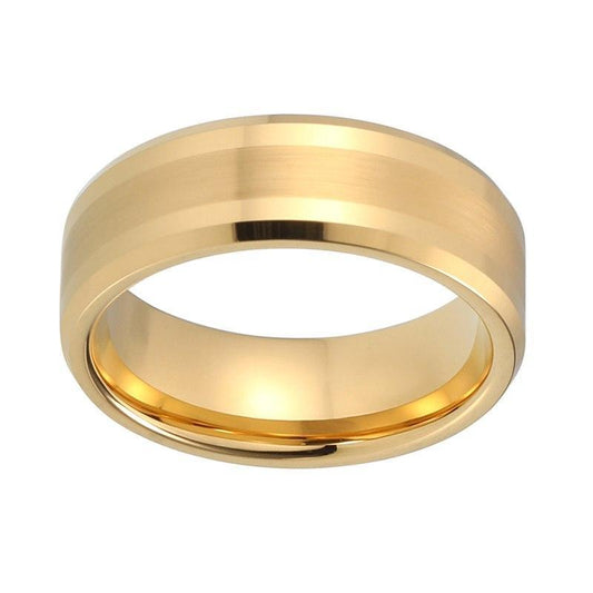 8mm Unisex Matte Polished Tungsten Carbide Yellow Gold-plated Wedding / Engagement Ring