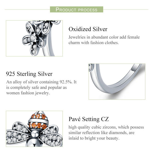 925 Sterling Silver Bee and Flower Yellow Cubic Zirconia Pendant