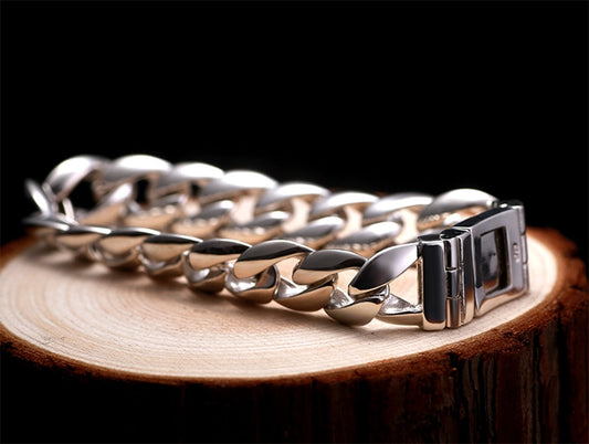 12mm Wide Flower Safe Lock High Polish Chain 925 Sterling Silver Bracelet