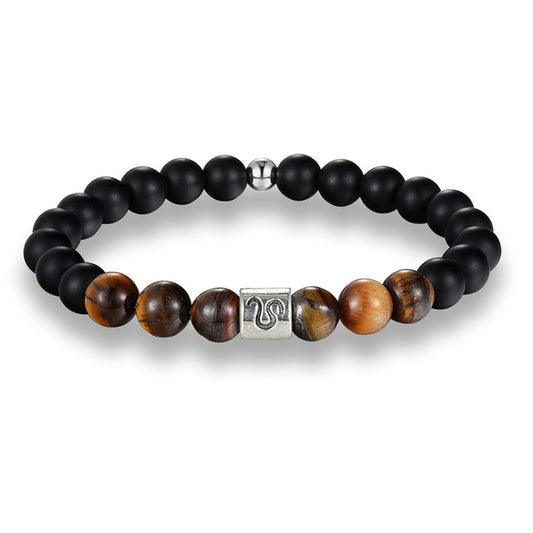 12 Zodiac Signs 8mm Tiger Eye Stone Beads Vintage Bracelet