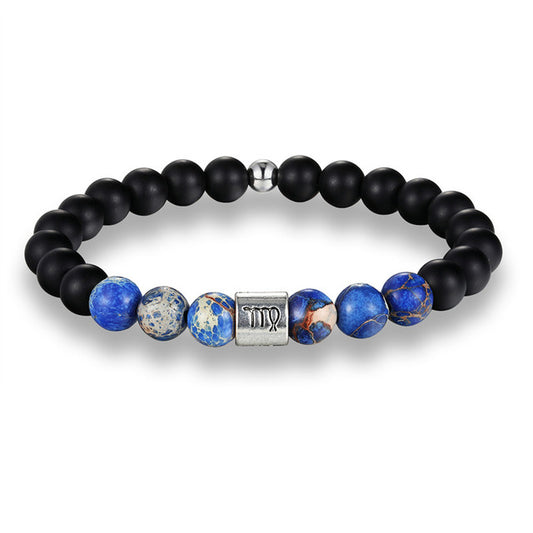 12 Zodiac Signs 8mm Matte Stone Blue Beads Vintage Bracelet