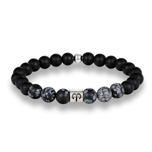 12 Zodiac Signs 8mm Matte Stone White Elastic Vintage Beaded Bracelet