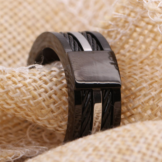 15mm Titanium Black Accented Double Cable Inlay and Single Silver Plated Centered Strap Men’s Wedding Band