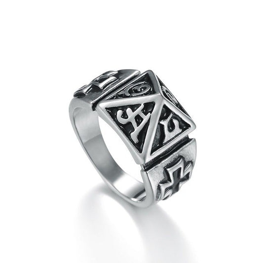 13mm Antique Silver Toned Stainless Steel Knight Templar Lucky Cross Totem Design Men’s Ring