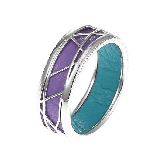 12mm 925 Sterling Silver Purple Leather Inlay Unisex Wedding Band