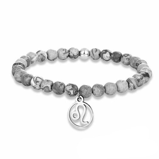 12 Zodiac Signs 8mm Matte Stone Gray Beads Vintage Bracelet