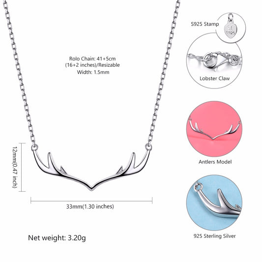 925 Sterling Silver Deer Antlers Pendant Necklace