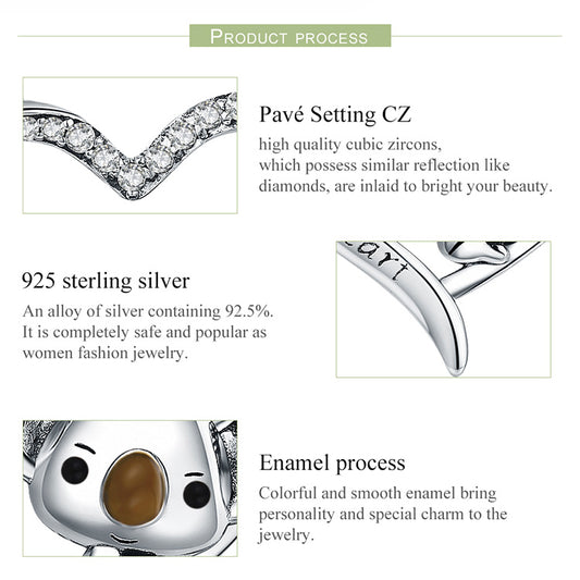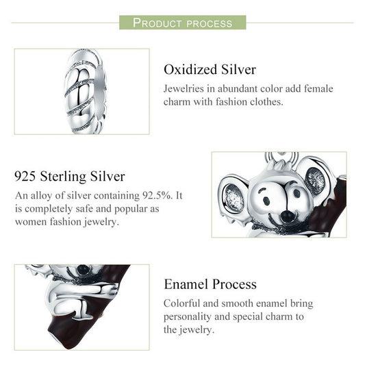 925 Sterling Silver Lovely Koala Dangling Charm Bracelet