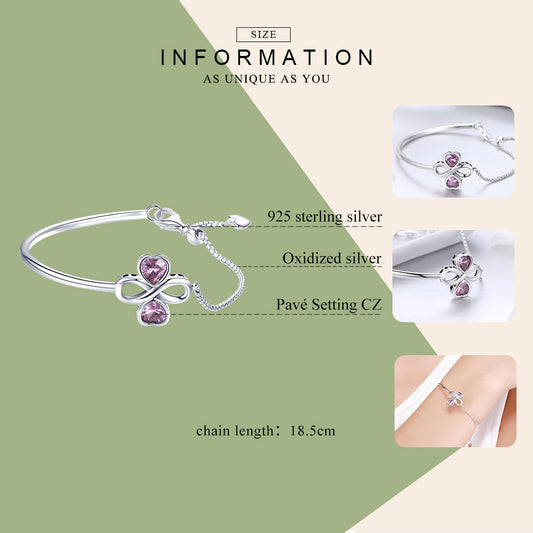 925 Sterling Silver Infinite Heart Clover with Pink Cubic Zirconia Bracelet