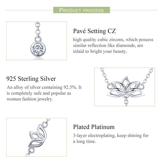 925 Sterling Silver Lotus Flower with Clear Cubic Zircon Pendant Necklace