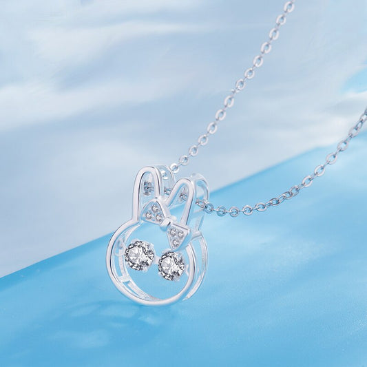 925 Sterling Silver Lovely Rabbit with Cubic Zirconia Pendant Necklace