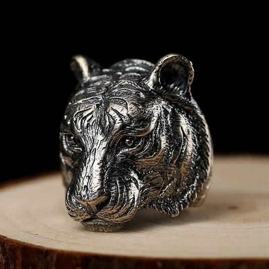 925 Sterling Silver Vintage Gothic Tiger Ring for Men