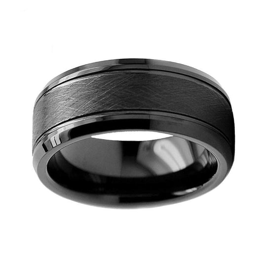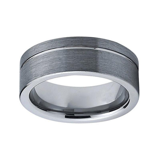 Artistic Brushed Matte Satin Finished Grooved Beveled Tungsten Carbide Ring
