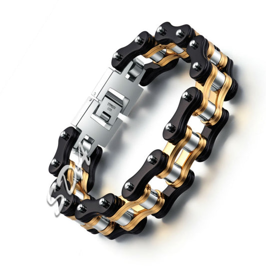 Biker Men's Black, Silver and Gold Motorcycle Chain Bracelet