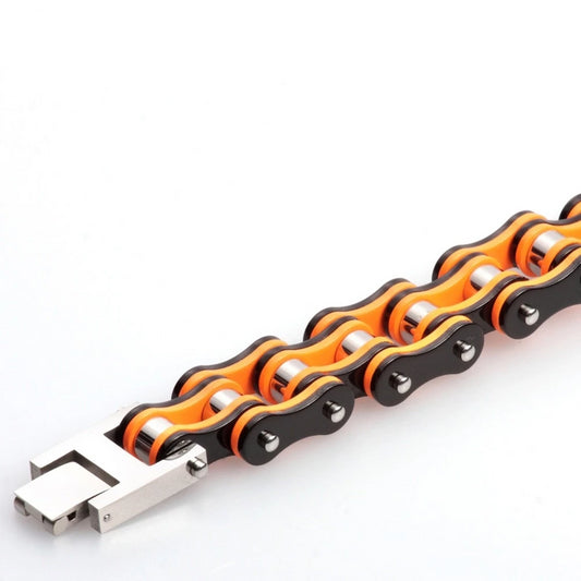 Biker Men's Orange and Black Motorcycle Chain Bracelet
