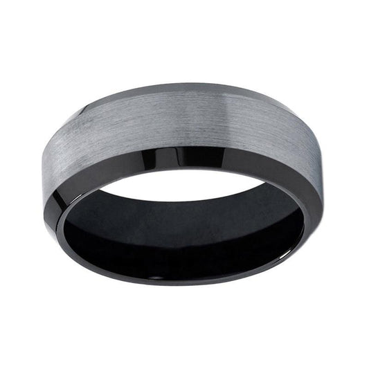 Beveled Shape Ring with Silver Brushed Matte Center Tungsten Carbide Wedding Ring