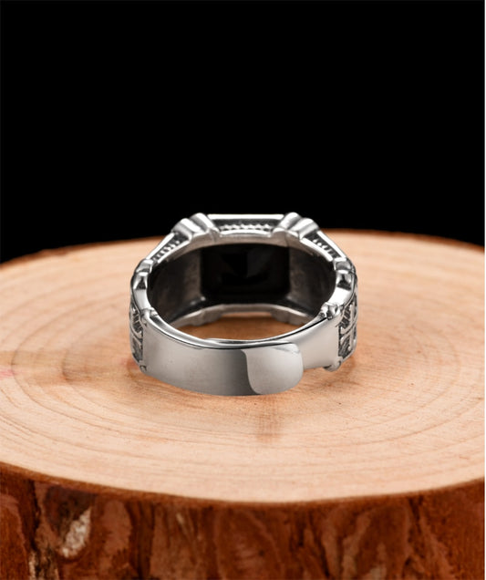 Black Cubic Zirconia Gold Plated Virgin Mary 925 Sterling Silver Vintage Ring
