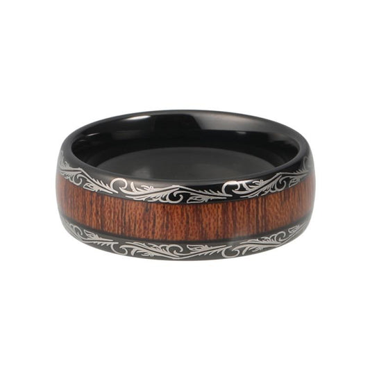 Black Celtic Step up Band with Wood Inlay and Black Tungsten Carbide Ring